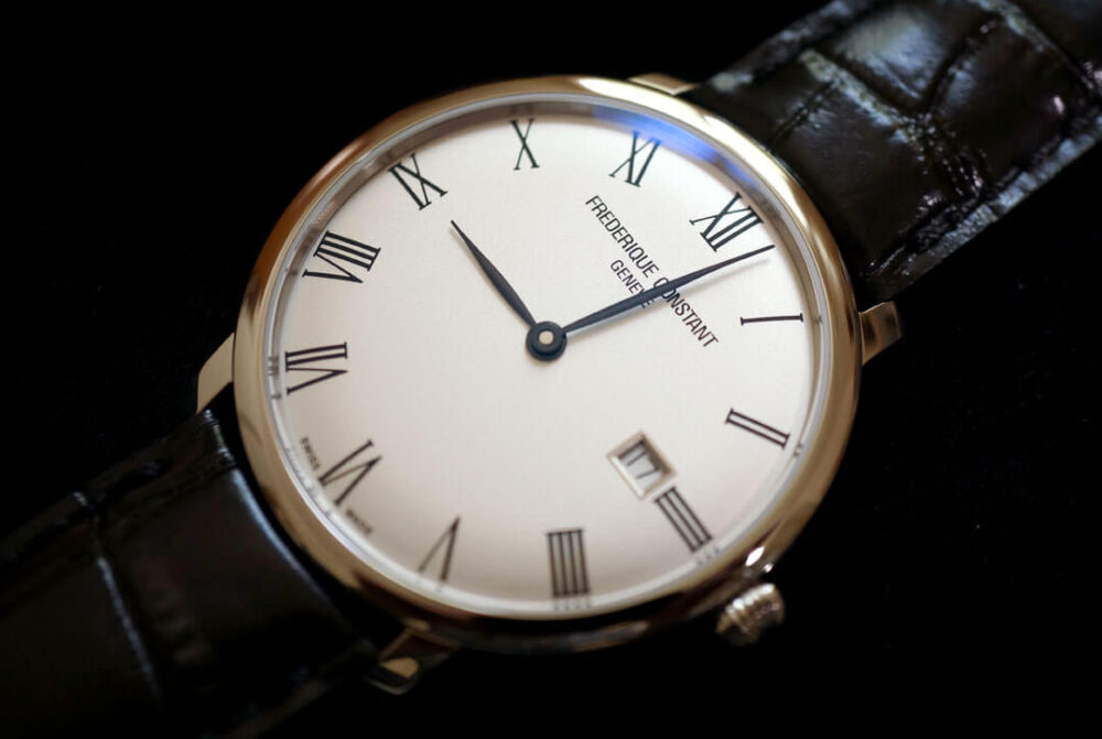 Avec ses lignes simples et épurées cette Slimline automatique est la parfaite réincarnation du classicisme, marque de fabrique de la maison Frédérique Constant. Boîtier 40 mm, mouvement auto de manufacture et verre saphir, découvrez sans plus attendre notre review de cette montre suisse.