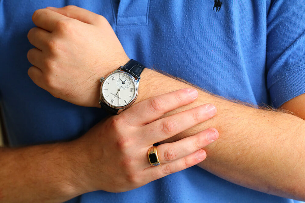 Le poids contenu, la faible épaisseur et le diamètre de 42 mm en font une montre très agréable à porter au quotidien, malgré les 13,35 mm d’épaisseur, qui ne gênent guère au niveau des manches de chemises. Le design sobre permet de l’associer avec tout type de tenues vestimentaires. Car une montre ne sert pas qu’à donner l’heure, elle se doit d’habiller le bras.