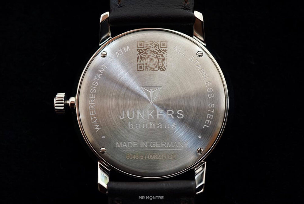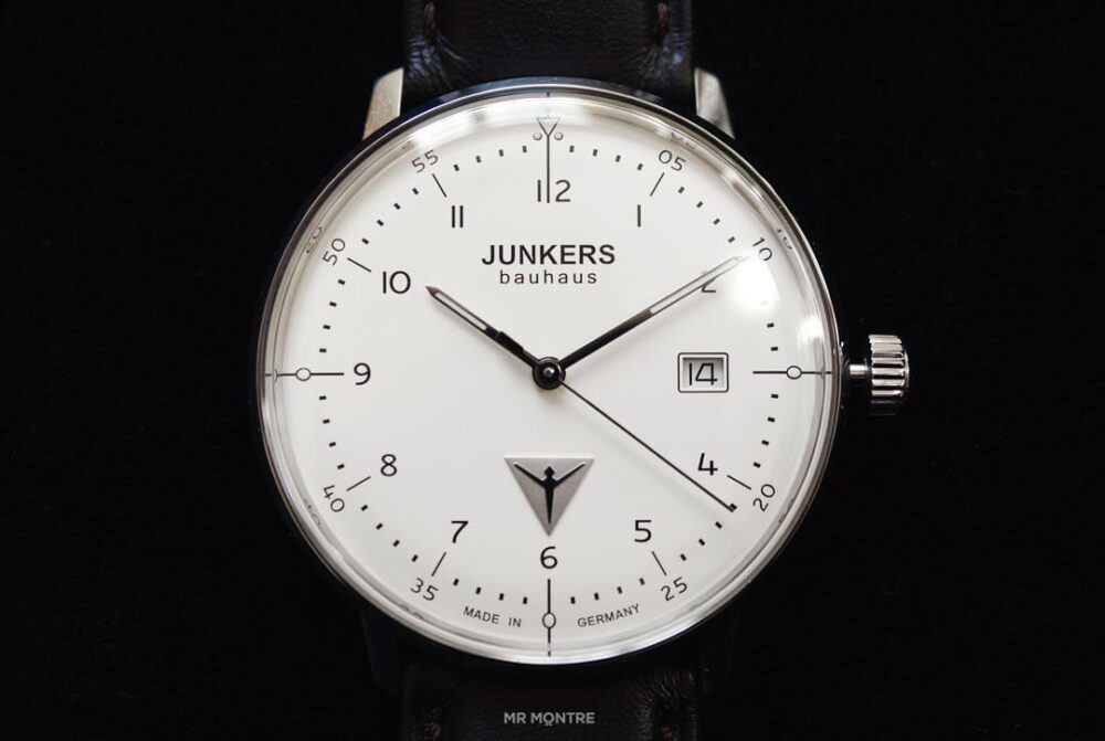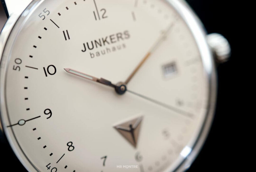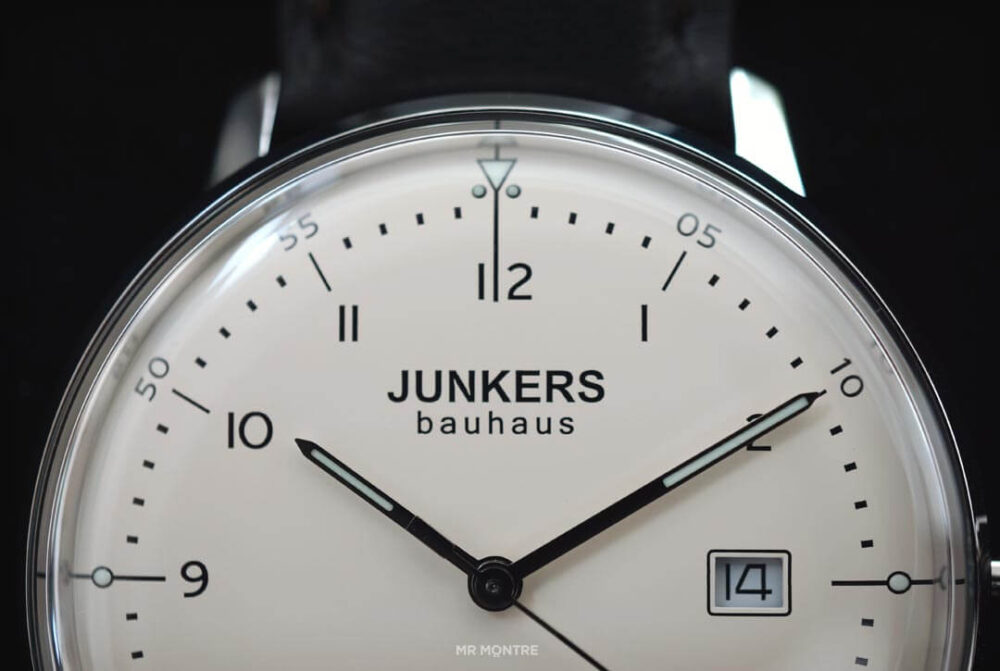 Parmi 13 lignes de montres que propose la marque Junkers, la 6046-5 fait partie de la collection Bauhaus. De l’allemand, « Bau » qui signifie construction et « Haus » maison, le nom de cette ligne est issu d’un courant architectural né en 1919. L’architecte Walter Gropius remanie le programme pédagogique de l’école d’artisanat de Weimar et y impulse modernité, simplicité et mélange des arts. Un style épuré et minimaliste qui, à bientôt 100 ans, est encore utilisé dans l’architecture, la photographie et dans l’horlogerie. Hugo Junkers adopta les codes de ce courant artistique lors de la création de ses avions et deux générations plus tard, son petit-fils l’adopta pour une ligne de montre.