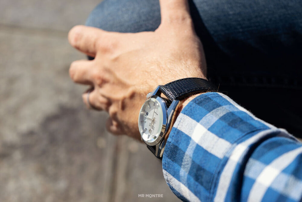 Que dire de cette montre ? Graphiquement elle est sublime. C’est une histoire de goût avant tout, c’est certain. Le diamètre de 36 mm ne plaira pas à tout le monde, mais s’inscrit dans l’esprit vintage que veut cultiver la marque française. Ses lignes sont à la fois très strictes et rondes, agressives et douces. La lisibilité du cadran est relativement agréable, seule la lecture dans l’obscurité n’est, à notre goût, pas suffisante.